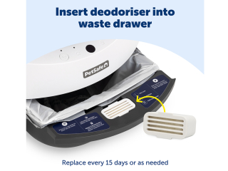 Specifically designed for the ScoopFree SmartSpin™ self-cleaning litter box, this accessory uses the fragrant properties of essential oils to keep your cat's waste drawer clean. The 2-pack of air fresheners combats and neutralizes unwanted odors from your cat's litter box, ensuring a fresher home. To install, simply remove the label and insert the air freshener into the compartment at the front of the waste drawer. With each air freshener lasting 15 days, each 2-pack provides up to a month of enhanced odor control.