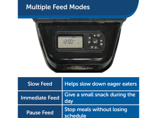 Slow Feed option: Slowly dispenses meals larger than 1/8 cup (30 ml) over 15 minutes for pets who tend to eat too quickly.