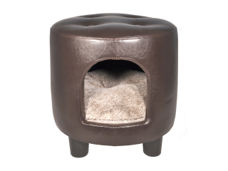 The pouf is made of a brown faux leather that you can easily clean with a damp cloth. Inside the little hiding place, there is a cosy cushion which is removable and can be machine washed at 30°C.