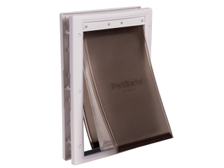 Considered 3.5 times more effective than single-leaf doors, this door blocks extreme temperatures thanks to its three panels, including an insulated central panel for added weather protection. It's easy to install yourself, and you can paint the white frame to match your door's color. Rest easy knowing your pet can come and go freely, regardless of the weather conditions.