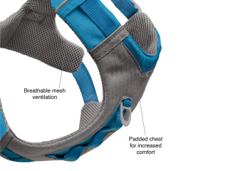 Athletic fit and convenient carrying handle on the back. This breathable harness features a deep V-neck for shoulder freedom and a wide padded chest panel to relieve neck pressure. With its all-aluminum hardware, it's feather-light (227 g)
